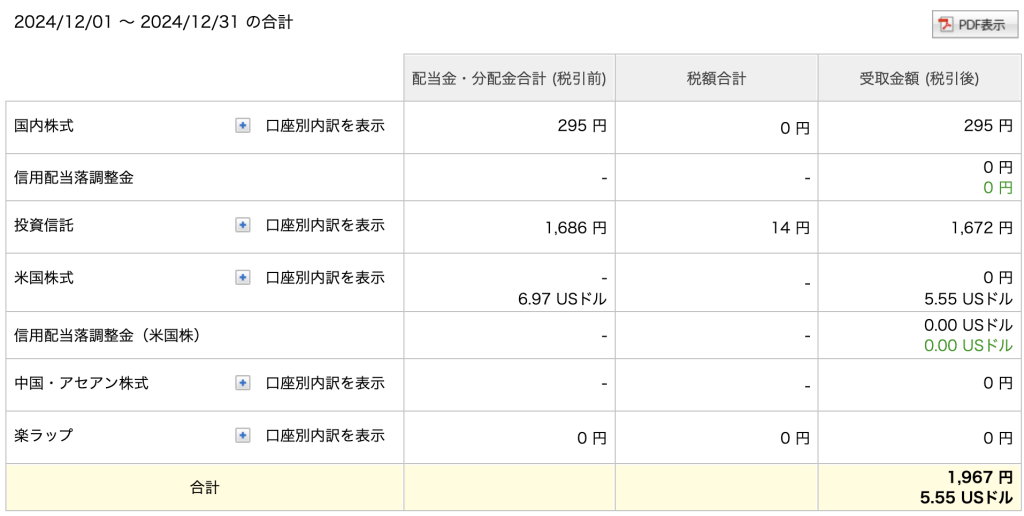 実際に、それで12月に得た収入は、このようになっています。