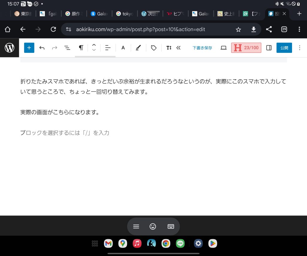 折りたたみスマホであれば、きっとだいぶ余裕が生まれるだろうなというのが、実際にこのスマホで入力していて思うところで、ちょっと一回切り替えてみます。